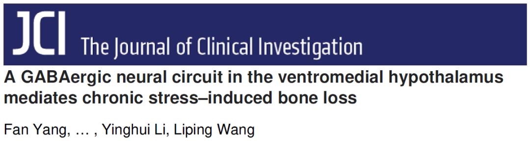 2020年12月,王立平和杨帆团队解析了大脑调控慢性压力应激导致骨丢失的中枢神经环路机制;该研究首次发现一条全新神经环路,揭示了慢性压力应激引发骨丢失的神经机制,为临床医学和航天医学中由于压力应激导致的骨丢失提供新的策略和治疗靶点。相关成果发表于临床医学经典期刊 The Journal of Clinical Investigation 。