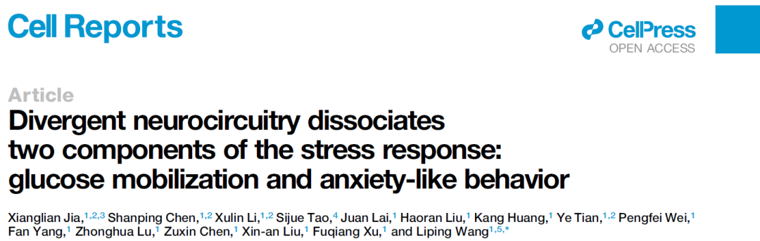 2022年11月,王立平团队发现压力应激导致焦虑和糖代谢异常的神经环路机制;该研究揭示了aBNSTGad2+→ARCGad2+的环路分别通过投射到中缝隐核(The Raphe obscurus nucleus,ROb)和孤束核(The nucleus of solitary tract,NTS)协调血糖变化和焦虑样行为输出。相关成果发表于国际知名期刊 Cell Reports 。
