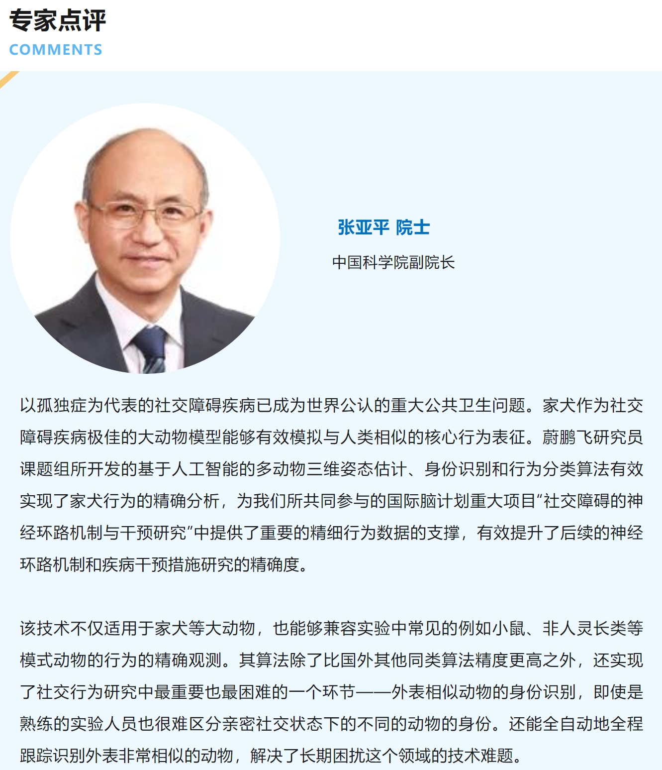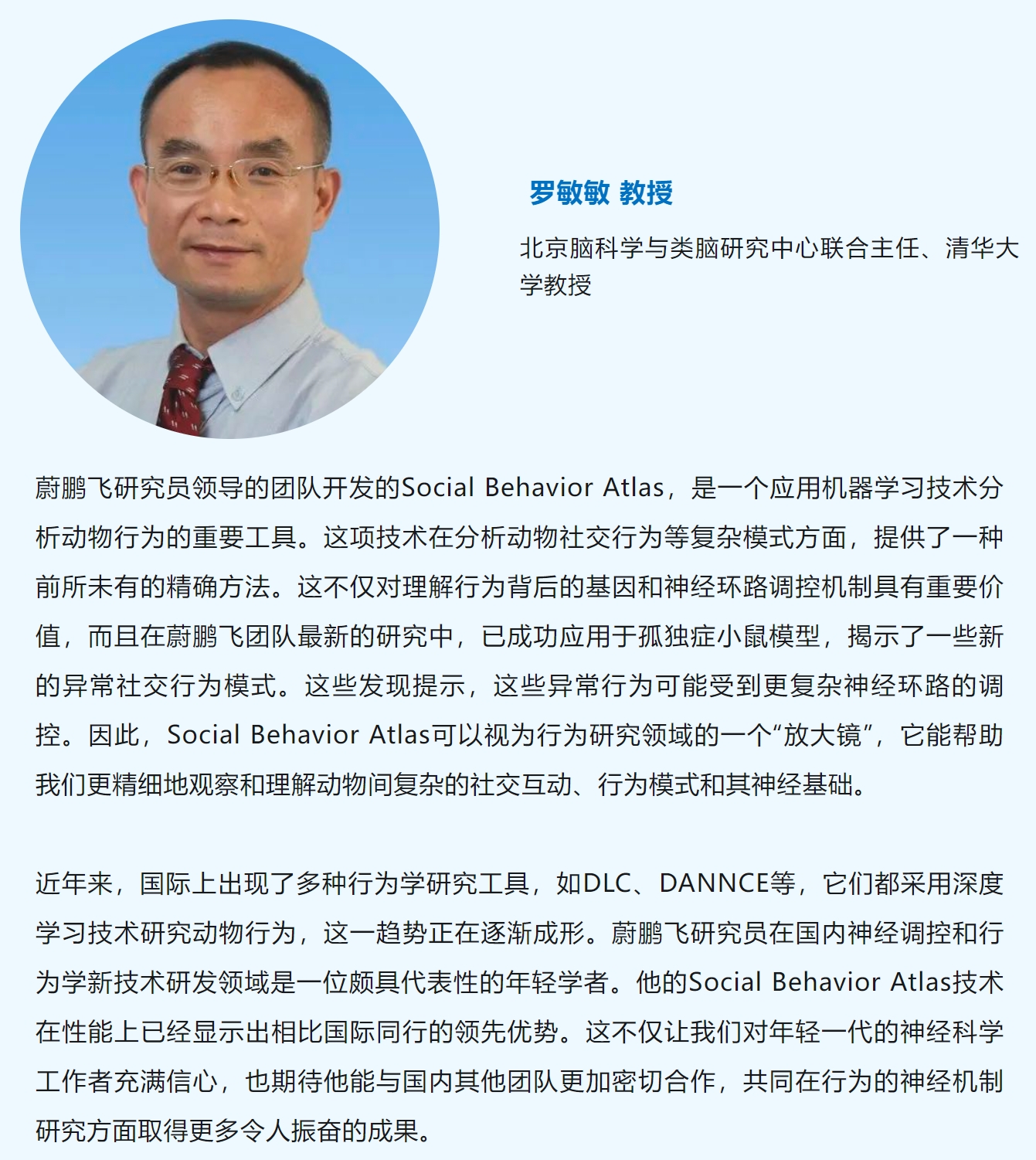 该技术实现了自由社交动物模型的无标签、高精度三维姿态估计、零样本身份识别和精细化社交行为分类,真正解决了精确检测动物社交行为的多个重要难点,有望为社交行为神经环路机制的研究带来研究范式上的变革创新。该工作为科技创新2030-“脑科学与类脑研究”重大项目“社交障碍的神经环路机制与干预研究”的实施,提供了重要的精细行为数据分析支撑。