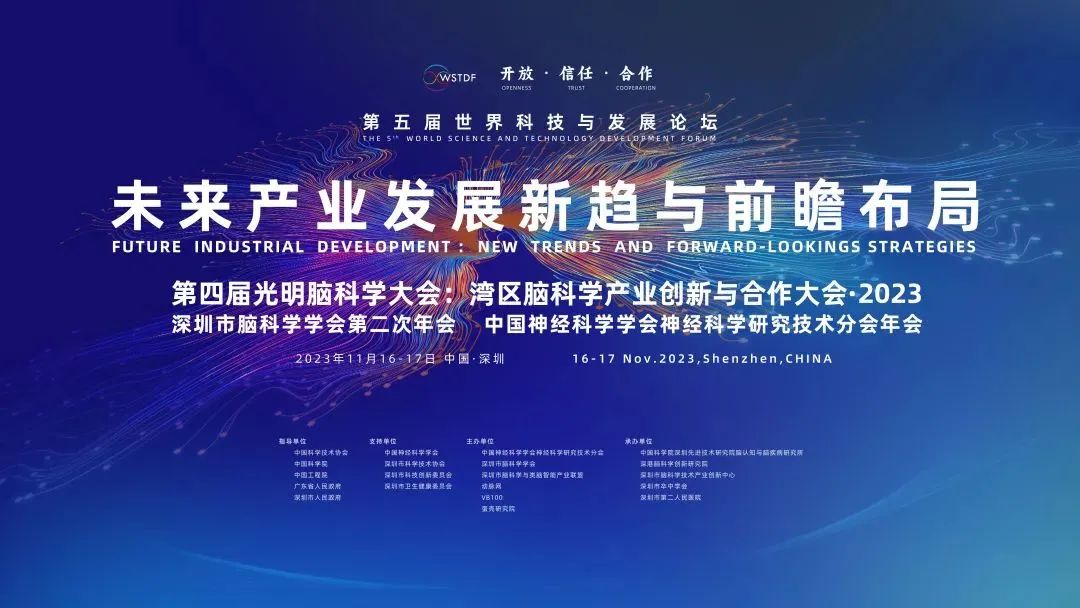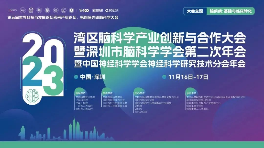 2023年,为促进国家脑科学科研技术进步,继续带动脑科学领域科技成果向现实生产力转化,共同推动全民脑健康和脑科学创新支撑健康中国战略,中国神经科学学会神经科学研究技术分会、深圳市脑科学学会、深圳市脑科学与类脑智能产业联盟、动脉网、VB100、蛋壳研究院联合发起“第四届光明脑科学大会:湾区脑科学产业创新与合作大会·2023暨深圳市脑科学学会第二次年会暨中国神经科学学会神经科学研究技术分会年会”。此次大会也将作为第五届世界科技与发展论坛未来产业论坛的脑科学平行论坛,于2023年11月16-17日在中国·深圳举办。
