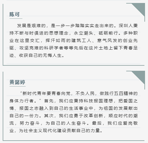 脑所/深港脑院团支部还组织团员青年开展了“弘扬五四精神,传承红色基因”的主题征文活动,并组织了团员代表与PI代表组成征文评选小组,为红色征文打分,评选出一等奖1名,二等奖2名,三等奖4名。部分征文精彩片段供大家赏析。
