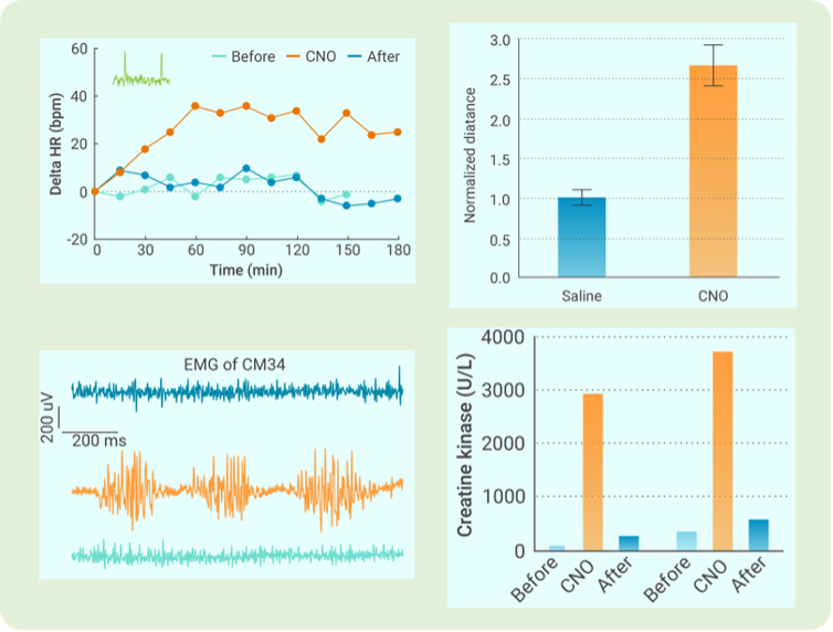 通过降低体温来降低神经元对能量的需求,被证实在中风等脑疾病的小鼠模型中,具有神经保护作用。但是小鼠作为自然休眠的物种,对低温耐受能力很高。休眠中的小鼠体温可以降低至18℃,心率可以降低到日常的30%。如何将基于小鼠的丰富研究成果,推广到体型为其千倍的人类上,还有着漫长的距离。通过非人灵长类动物模型,可以良好的填补这个空白。本研究利用与小鼠相同的神经调控手段,靶向相同脑区的同一类型神经元,成功地调控了非人灵长类动物的体温,为通过降温来保护神经,提供了有益的探索。