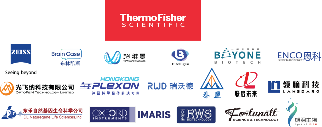 本次会议,邀请到赛默飞世尔科技、蔡司、布林凯斯、超维景、一湾、百汇拓知等近20家从事前沿技术开发、生物技术咨询与服务的相关公司在大会期间做技术报告或展台交流。这些公司带来的新技术、新理念与新方法,共同推动脑科学领域的健康发展。