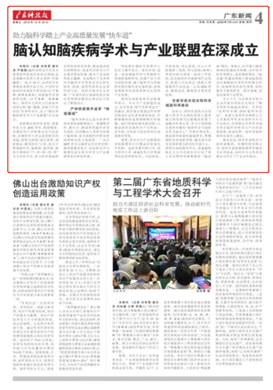 《广东科技报》:脑认知脑疾病学术与产业联盟在深成立