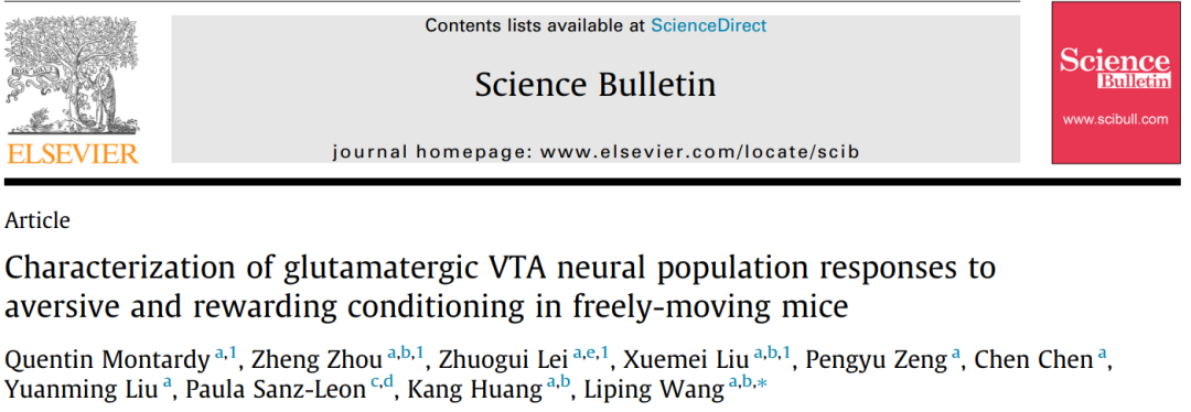 2019年5月13日,王立平研究员团队在中国科学院院刊Science Bulletin在线发表题为“Characterization of glutamatergic VTA neural population responses to aversive and rewarding conditioning in freely-moving mice” 的研究论文。