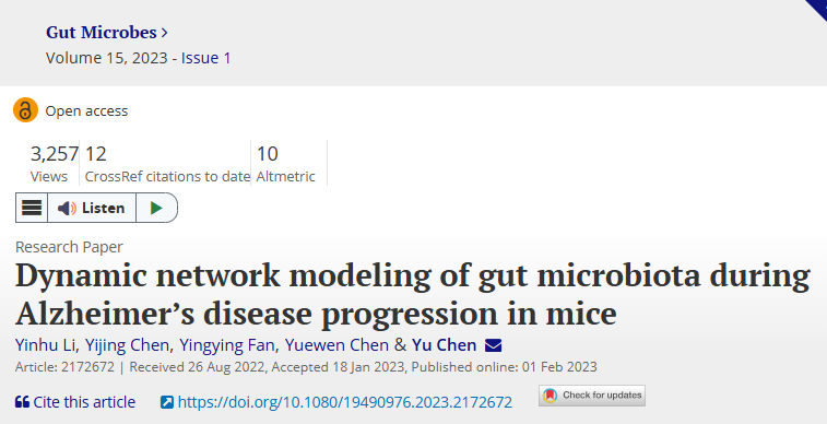 2023年2月1日,陈宇研究员团队在Gut Microbes期刊在线发表题为“Dynamic network modeling of gut microbiota during Alzheimer"s disease progression in mice” 的研究论文。