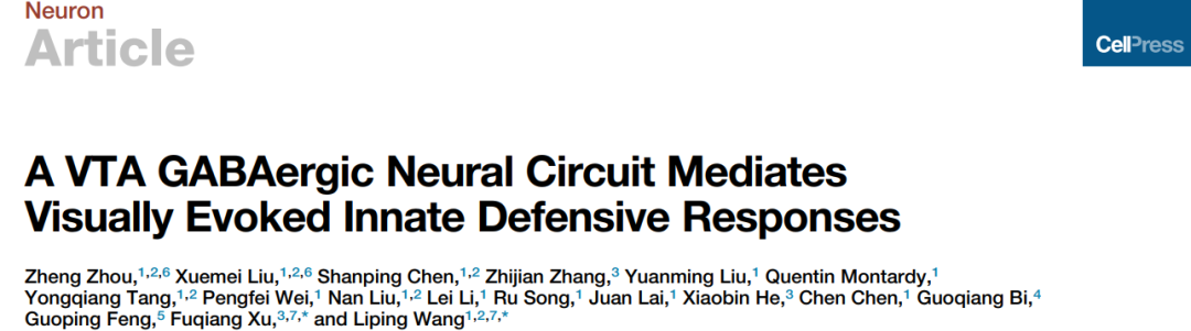 2019年6月12日,由王立平研究员团队与中国科学院武汉物数所徐富强教授团队(现属深圳先进院脑所),联合在Neuron在线发表题为“A VTA GABAergic neural circuit mediates visually evoked innate defensive responses” 的研究长文。