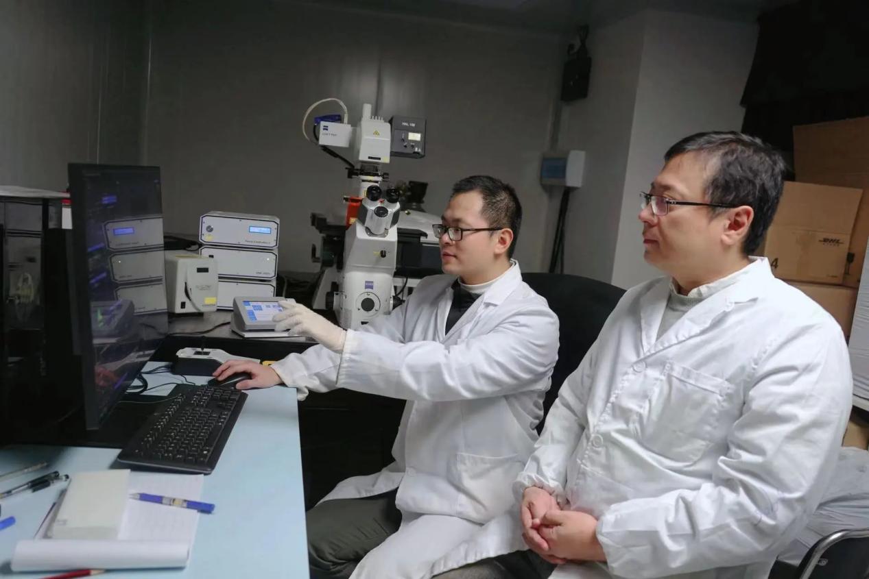 论文通讯作者詹阳(右一)论文第一作者吕泽中(左一)