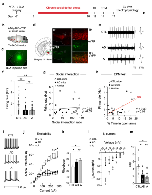 5、韩明虎团队揭示VTA-BLA投射神经元编码焦虑行为而非抑郁行为