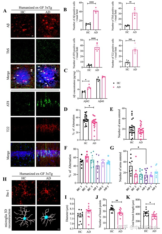 图 | 移植AD患者粪菌后的无菌小鼠表现出增强的