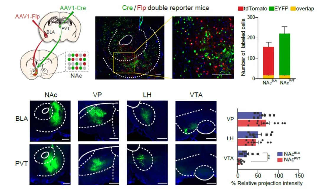 该研究提供了一种伏隔核(NAc)神经元编码奖赏和厌恶的环路新视角,回答了困扰领域多年的问题:为什么不同的谷氨酸输入在伏隔核介导相反的行为。本研究成果也有助于推动对奖赏与厌恶相关疾病防治的深入研究,例如,通过调控NAcPVT环路来治疗成瘾,调控NAcBLA环路来干预抑郁症等。