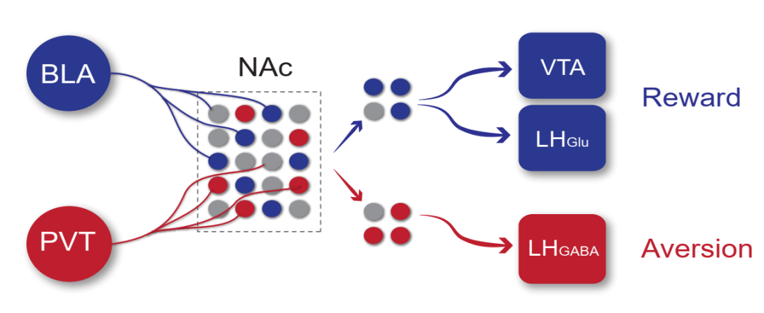 该研究提供了一种伏隔核(NAc)神经元编码奖赏和厌恶的环路新视角,回答了困扰领域多年的问题:为什么不同的谷氨酸输入在伏隔核介导相反的行为。本研究成果也有助于推动对奖赏与厌恶相关疾病防治的深入研究,例如,通过调控NAcPVT环路来治疗成瘾,调控NAcBLA环路来干预抑郁症等。