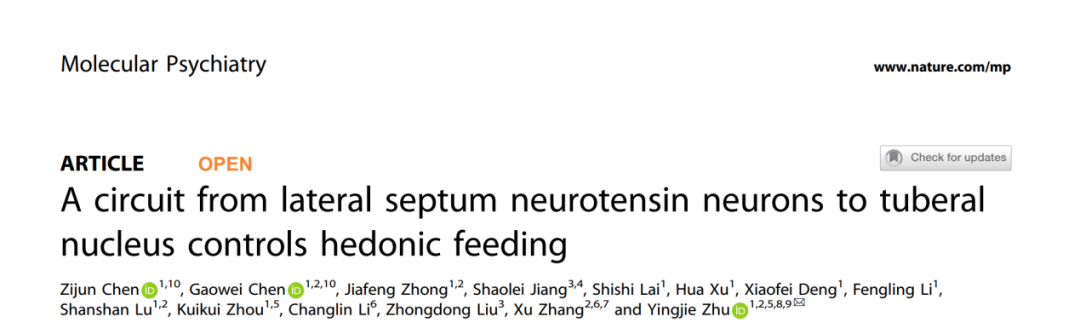Molecular Psychiatry | 中科院深圳先进院朱英杰团队发现调控享乐性进食的神经环路