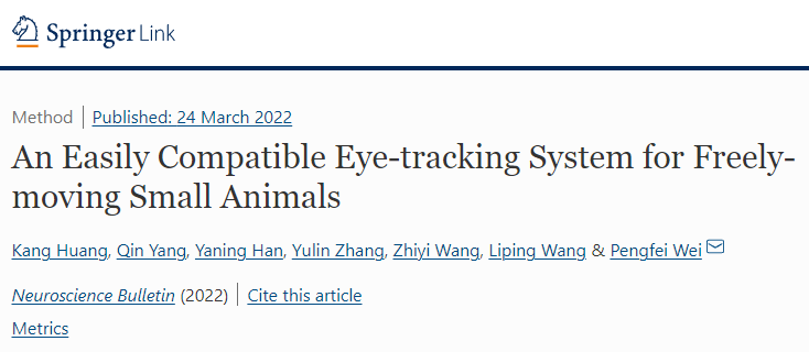 北京时间2022年3月24日,中国科学院深圳先进技术研究院(简称“深圳先进院”)脑认知与脑疾病研究所脑图谱中心蔚鹏飞研究员团队(以下简称“脑所团队”)开发出用于自由移动小动物的超微型易兼容眼动追踪系统。相关研究成果以“An Easily Compatible Eye Tracking System for Free-moving Small Animals”为题发表在Neuroscience Bulletin期刊上。