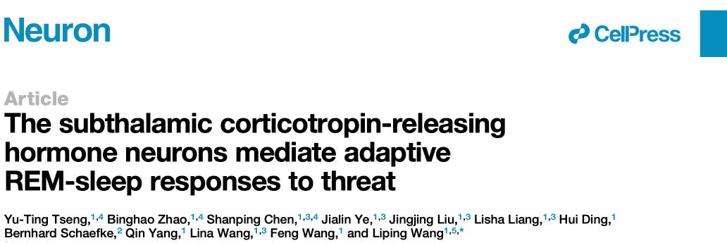2022年1月22日,中国科学院深圳先进技术研究院、深港脑科学创新研究院王立平团队在Neuron杂志在线发表了题为“The subthalamic corticotropin-releasing hormone neurons mediate adaptive REM sleep responses to threat”的研究论文[1],首次揭示了调控快速眼动睡眠与本能防御行为的“共享”神经环路,此大脑的“节能”模式的建立可能在进化过程中因适应环境的挑战而得到了发展和强化,此“共享”环路的发现揭示了快速眼动睡眠具有潜在“防御天敌”的功能。这是继2019年团队在Neuron发表“A VTA GABAergic neural circuit mediates visually evoked innate defensive responses”研究成果后[2],在“本能恐惧行为的神经环路”解析方面的又一重要进展。